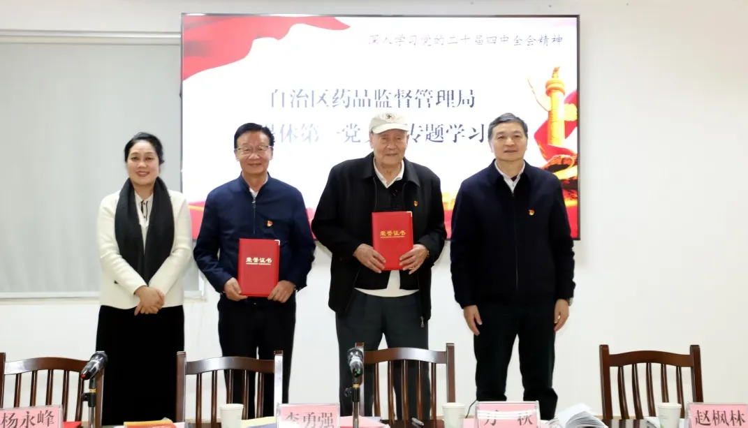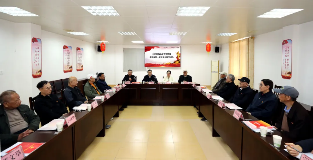 近日,自治区药监局离退休第一党支部组织全体党员专题学习党的二十届四中全会精神,局党组书记、局长李勇强参加学习并讲话,局党组成员、副局长万秋参加学习。