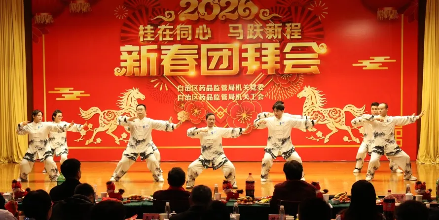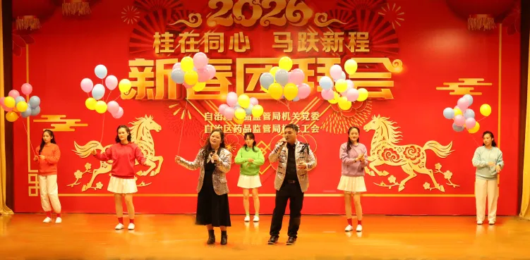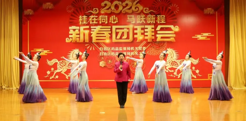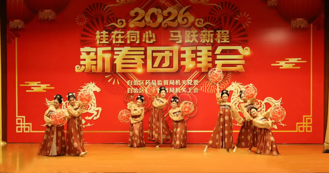 整场团拜会节目精彩纷呈,高潮迭起,充分展现了广西药监人团结奋进的精神风貌和“桂在同心”的凝聚之力。2026年,广西药监系统将继续在局党组的坚强领导下,同心协力,奋楫争先,为筑牢药品安全防线、促进医药产业高质量发展、守护人民健康福祉作出新的更大贡献。