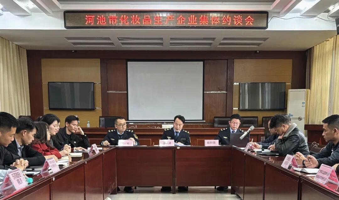 近日,自治区药监局河池检查分局召开河池市辖区化妆品生产企业风险交流暨集体约谈会。