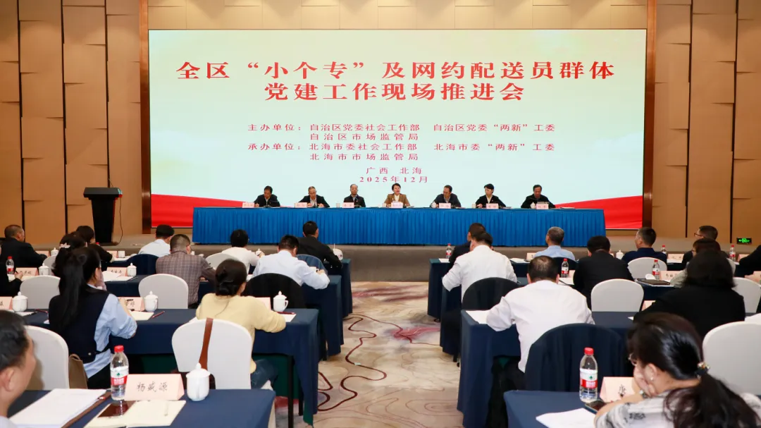 近日,全区“小个专”及网约配送员群体党建工作现场推进会在北海召开。会议深入学习贯彻习近平总书记关于新兴领域党建工作重要论述和重要指示,学习贯彻党的二十大和二十届历次全会精神,全面落实中央社会工作会议、新兴领域党建工作座谈会和全国“小个专”及网约配送员群体党建工作座谈会精神,总结交流经验,研究部署下一阶段工作任务。自治区党委社会工作部部长、“两新”工委书记唐轶昂,自治区市场监管局党组书记、局长李泽出席会议并讲话。北海市副市长曾玲出席会议并致辞。市场监管总局“小个专”党建办有关负责同志到会指导。