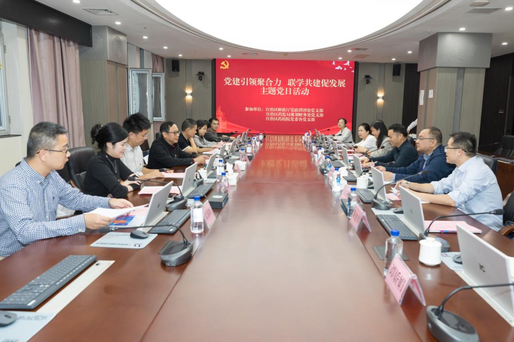 随后,三方党支部集体观看廉政警示教育专题片,以案为鉴筑牢廉洁自律思想防线,党员代表围绕党建工作创新实践、党建与业务深度融合路径、财政资金规范使用、廉政风险防控等主题展开深入研讨与交流。广西财政厅党政群团处党支部书记、党政群团处处长唐海涛指出,守住全区药品安全底线就是工作的最大成效,年轻干部要立足岗位、接续奋斗,在实干中锤炼能力、彰显价值。与会人员就构建 “亲清” 政商关系、建立常态化联建共建机制达成广泛共识。