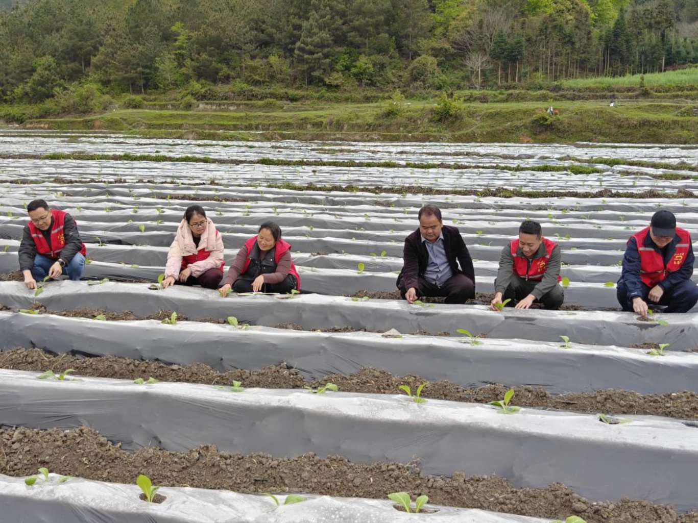烟叶种植是关西村群众增收的支柱产业,2025年全村种植烟叶60亩,带动15户脱贫户务工增收,每亩产值达2800元。为进一步做强特色产业、拓宽增收渠道,2026年关西村烟叶种植面积扩大至100亩。针对当地烟叶移栽期烟农劳动力短缺问题,工作队主动化身“助农突击队”,与烟农一同翻土、起垄、规范移栽,并邀请农资专家现场指导种植技术要点,确保不误农时、保障种植质量,以实干助力烟叶产业稳产增收,让“金叶子”真正成为群众的“致富叶子”,以“党建红”赋能春耕生产、护航群众增收。